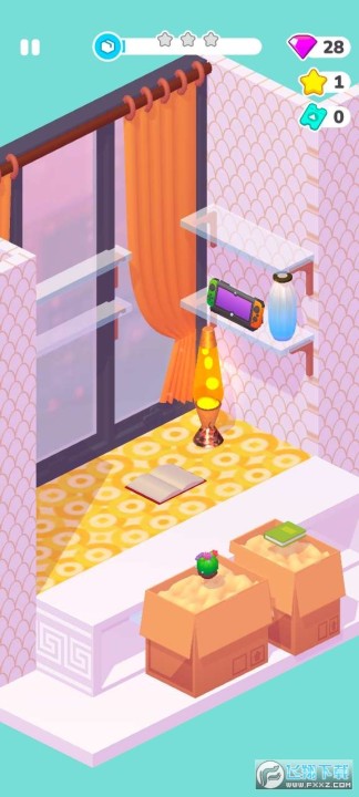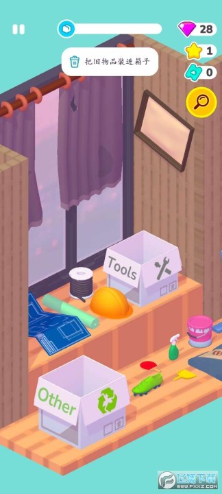 2、首先将未装修的旧房间的家具和物品分类到正确的盒子中,然后继续选择家居设计选项,拆箱和放置家具,最后打开包装并在重新装修的房间中布置新的装饰物品和财产。