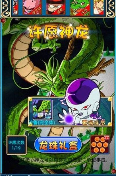这款龙珠题材的卡牌手游,虽然其他的玩法设定和同类的游戏基本一样,但是龙珠的游戏主题就使得一大批粉丝会加入到游戏中去,画面也算及格分数,七龙珠粉丝们赶快来下载吧。