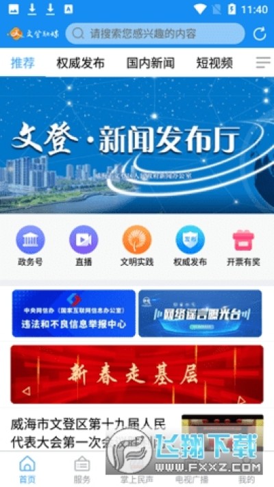 文登融媒(召文台)”APP集资讯发布、文明实践、便民服务、直播互动于一体,设置了文登新闻、电视广播、国内新闻、直播、短视频、掌上民生、志愿服务、信用码上见、随手拍、便民服务等一系列政务、民生、资讯、互动版块,实现电视、报纸、广播、现场活动等在手机端的直播、点播、回看,是文登官方最具权威性、影响力的新闻“云”平台。