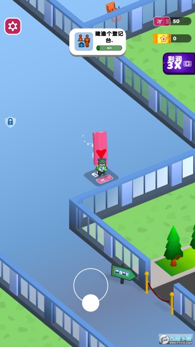 2、你需要解锁更多的员工来帮助玩家一起管理机场。你应该按照箭头指示驾驶飞机环游世界。