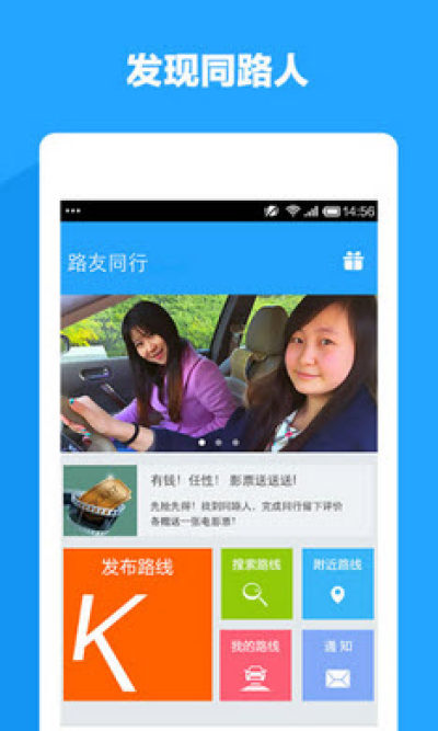 路友同行颠覆了只能以起点和终点进行匹配的传统技术,用户无需反复更换路线,所有同路人一目了然;