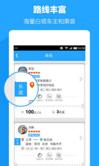 能精确显示用户和他人的匹配度,让用户准确找到和自己最匹配的路线;