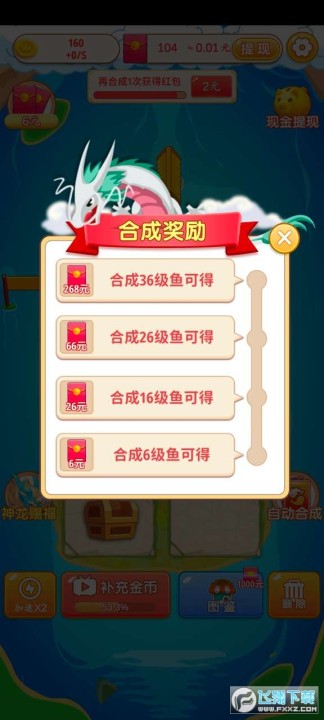 1、快来合成红包版也是召唤神龙的玩法系列,从小鱼开始合成,只要升级获得神龙,就可以领取红包啦。