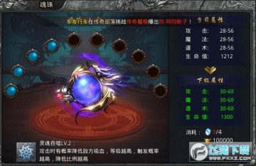 魂珠呢可以使我们玩家所选择的职业战力属性和生命值的增加,升级还会有额外的属性增加,魂珠有一个重要的功能,就是灵魂百噬,在攻击时有几率降低对方的吸血能力,灵魂百噬的等级越高,触发的概率也就越高,而升级呢需要消耗魂珠精髓,魂珠精髓的获取方法呢就是玩家前往修罗遗迹击败守卫可获得魂珠精髓。