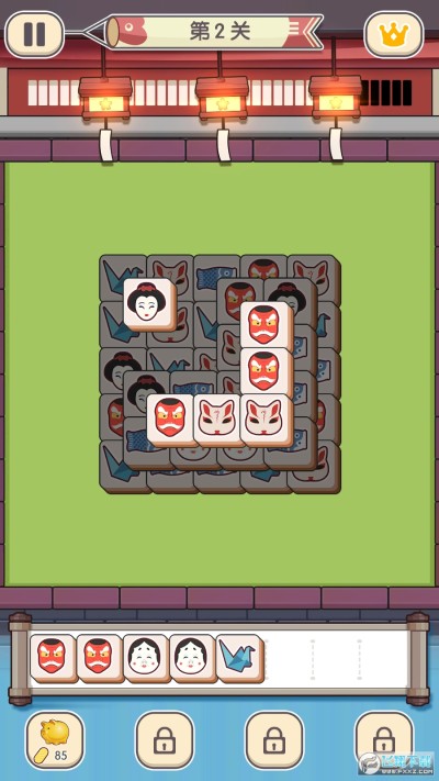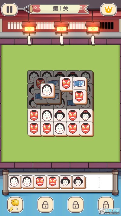 点击榻榻米上的方块元素,并将3个相同的元素放置到卷轴上即可消除。消除完该区域内所有方块即可获胜!如果卷轴上有7个以上的方块,游戏将结束。