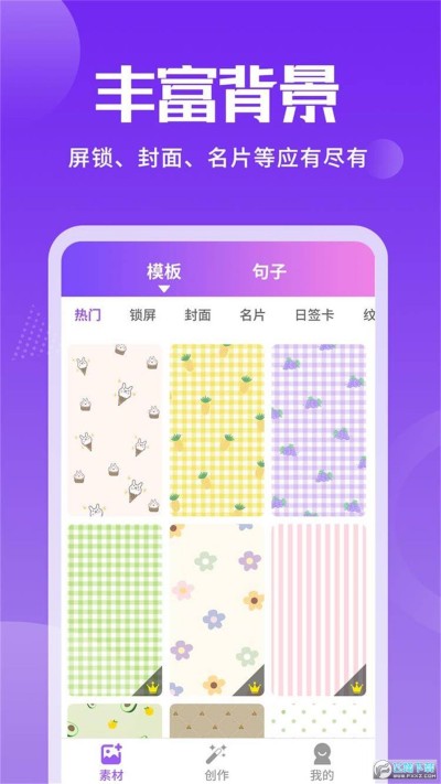 2、丰富背景,屏锁、封面、名片等应有尽有。