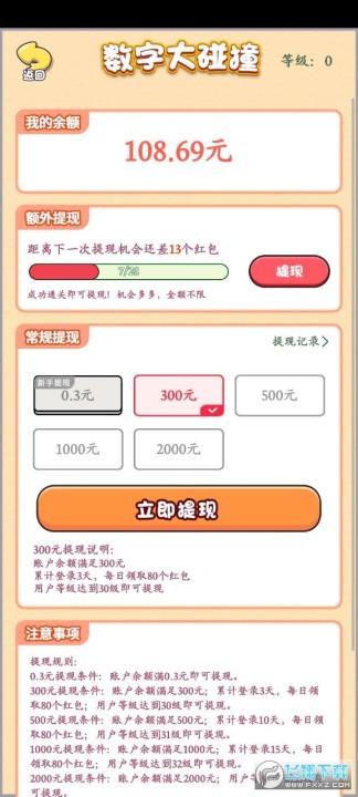 2、简单合成数字,不断升级解锁红包,红包积攒提取,所有红包都能提取,随时到账。