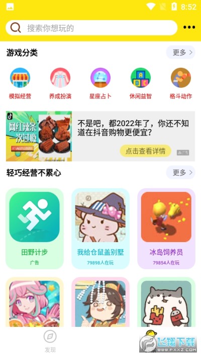 3.不管不喜欢什么类型的游戏,迷你福世界APP中有一款你喜欢的游戏,通过游戏分类就能找到你喜欢的一系列游戏。