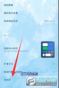 3、在通知与控制中心页面找到下方底部的【状态栏】。