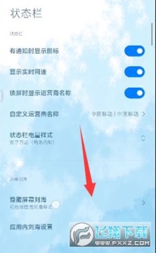 4、在状态栏设置页面选择【隐藏屏幕刘海】。