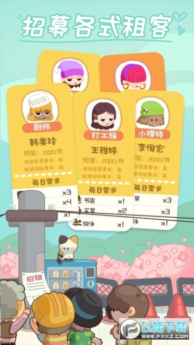 1、有趣的房东题材经营模拟游戏,各种玩法,随意尝试;