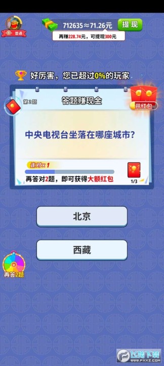 2、每一个红包都是0.3元起步的现金奖励,游戏非常考验你的知识水平。