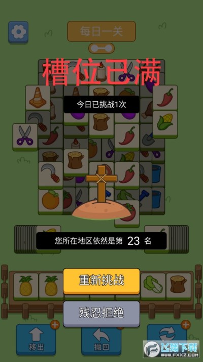 3.全部方块都消除完毕,即可顺利通关,一旦七个卡槽满了意味着挑战失败。