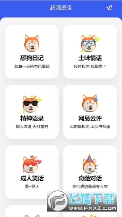 超级语录app最新版是款非常好玩的语录app,在这款app中用户可以使用复制超多有趣的语录,可能是祖安宝典,也有土味情话,各种有趣的句子都有,喜欢的小伙伴快来下载试试吧!