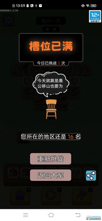 2、难度:游戏中有所谓的每日一关,第一关的难度不大可以说很简单,但是第二关就非常的困难,去迎接挑战。