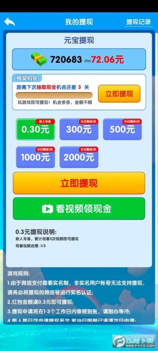 1、玩家可以点击相同的水果来进行闯关,有机会成功完成关卡目标并获得红包。
