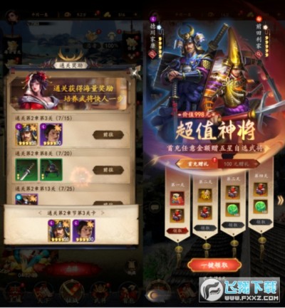 第二核心雷系德川家康,前期最强大的肉盾角色之一,既能分摊伤害又能回血,且100%的反击让他也拥有了不俗的伤害,是新手推图练级中不可缺少的好帮手。大家跟随主线就能获得第1个德川家康,任意金额首充即可获得第2个。