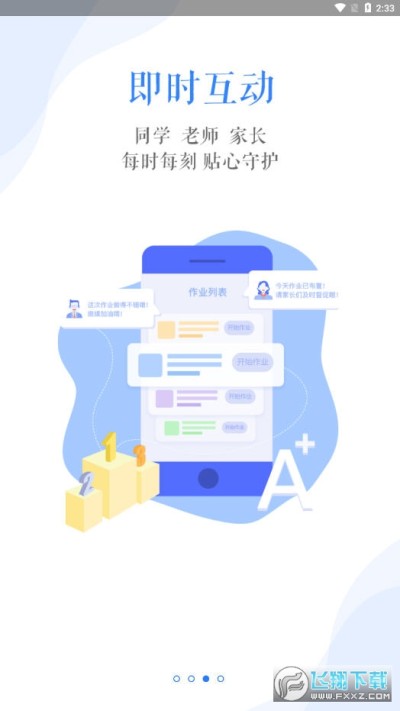 6、在线作业即时互动:点击“作业” ,在线接收老师布置的作业,支持智能化提交学生作业的录音和成绩,便于学生高效完成作业,同时帮助老师针对性讲评。