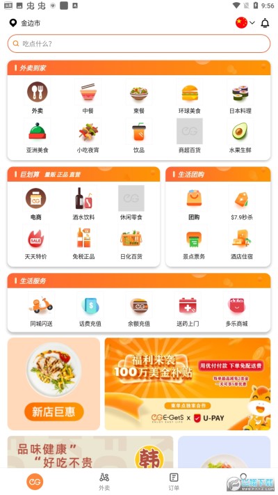 柬埔寨特色单点平台中文、高棉语、语言可以自由切换,中餐西餐、柬埔寨餐单一键翻译成您的母语,让专业的礼宾团队,早日让您轻松将品质生活点送到您的身边!送餐上门~网罗周边各类美食,中餐、美食、柬埔寨餐、火锅、烧烤、烘焙、私家菜、夜宵、早餐、甜品、花茶、水果蔬菜、生鲜、寿司等咖啡、中国超市购物品牌……日常生活用品,一手掌握。
