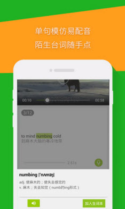 4.单词积累:视频台词中的生单词点击直接翻译,学习不再困难。一键加入生词本,随时进入学习中心巩固积累词汇,不知不觉中提升词汇量!