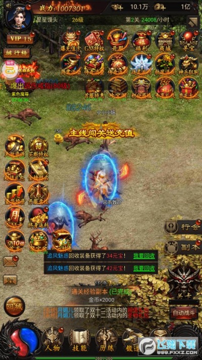 2、战斗乐趣不断,挂机爆无限真充,刀刀光柱刀刀爆。