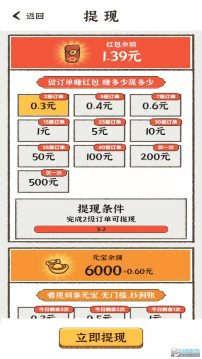 2、游戏中的订单任务难度不断增加,在这里快速解锁植物挑战,完成游戏命令解锁红包福利。
