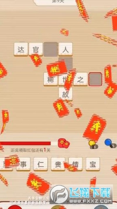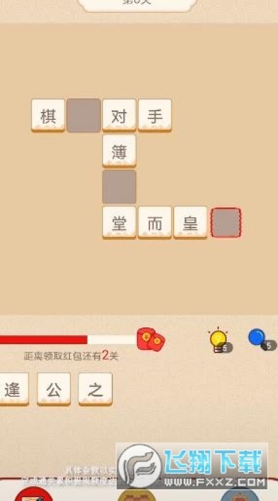 2、每一次的闯关,都会有五个成语出现,其中空白的区域,你要填空;