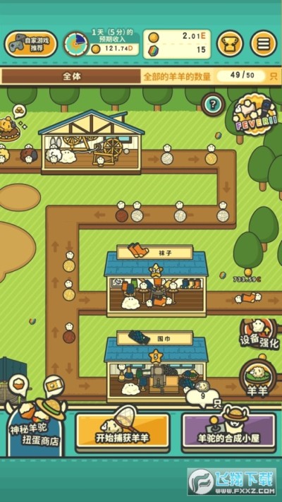 3、建设更多工坊,利用羊毛制作周边商品,强化升级工坊,获取更多销售额!