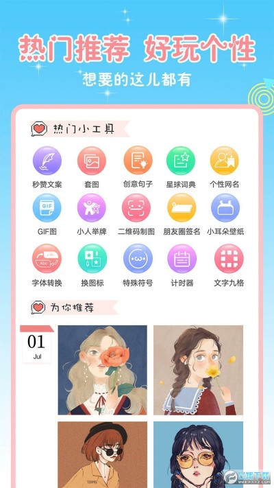 3、集合头像、网名昵称、签名、文案、套图、热词等资源于一体。