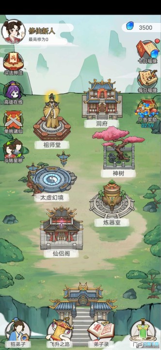 修仙也疯狂免广告版最新版是一款Q版仙侠题材的放置养成类手游,游戏里玩家可以在修真世界里建造自己的门派,招收有潜力的弟子,收集资源种植各种药草炼制灵丹妙药,不断的壮大自己宗门的实力,解锁更多的建筑玩法还有独特的双修内容等你来体验!