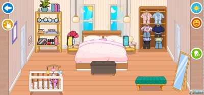 房屋中有8个不同的房间,包括客厅,孩子的房间,父母的房间,门廊,厨房,后院花园,游泳池和浴室。您可以进入不同的部分以探索冒险并保持井井有条。这些属性使其成为想学习家居装饰和其他家庭活动的女孩的酷游戏之一。