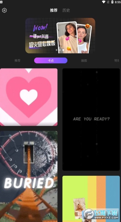 提供多种主题丰富的模板。卡点、融图、动漫、特效、动漫、复古胶片模板等,不同主题的模板设计精美,持续更新中!