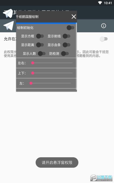 纸飞机绘制辅助免费卡密版是一款多功能的辅助工具,在悬浮框里开启功能并根据自己的需求自由的选择不同的功能,丰富的工具可以选择使用帮助玩家们在射击里获取更多的优势,随时随地的掌握敌人的动态并更好的准确击杀敌人,需要的小伙伴们快来下载试试吧!