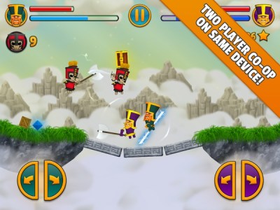 玩家通过挥动武器,斩杀敌人,同时可以借助敌人的力量,向上腾空,避开其他敌人的攻击并俯冲攻击下一个目标。此外,天空中会不时掉落一些宝物,玩家可以适时利用这些宝物做为一跃而起的垫脚石,整个过程将令玩家感觉非常的流畅、爽快。