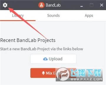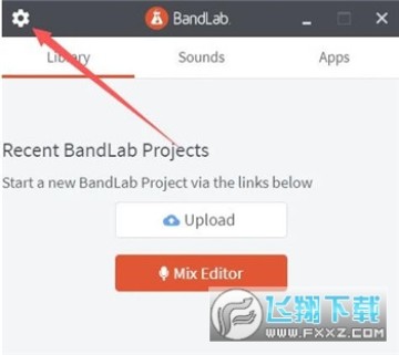 1、首先打开BandLab最新版进入首页,然后点击箭头所指的齿轮