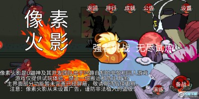 经典复古的像素风图形打造的各种帅气忍者,可以操控这些忍者来同其它动漫之中的角色进行格斗