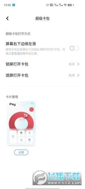 选择超级卡包打开方式,将右面的开关置于开启状态。