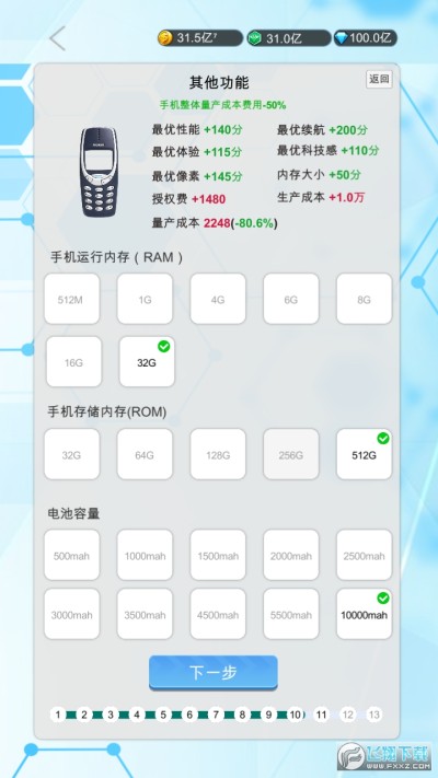 3、国产手机帝国破解版中有大量可供升级的科技,各种配件均可不断升级