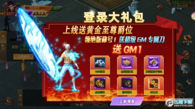 1、上线送GM专属战刀,无门槛装备,轻松砍翻所有BOSS。