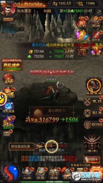5、游戏中还有自由挂机系统,挂机时刷怪既可以增长经验值,又可以拾取掉落的装备,会让玩家觉得十分爽