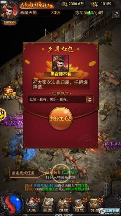 2、多人跨屏pk,支持离线挂机,所有装备随便打,所有boss随便刷,谁主浮沉。