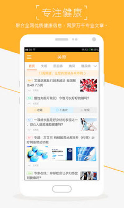 汇聚全网健康信息,网罗万千专业文章,从痛风饮食,中医养生,高血压、肝病、糖尿病药物推荐等慢性病预防和治疗,到新闻专题、心理、情感、备孕、减肥、整形、失眠、中医、儿童罕见病等等话题应有尽有。