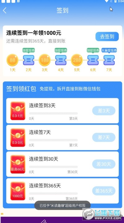 2、每天签到有奖励,连续签到打卡福利会更多;