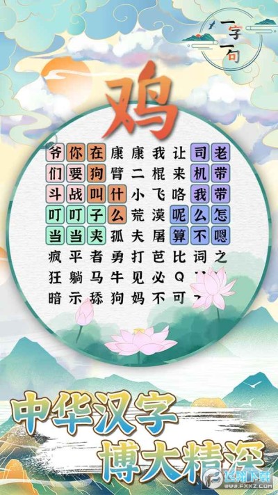 3、每次单击一个字就可以进入游戏,横屏的操作非常的直观,色彩和色彩都非常的逼真,简洁而又不失优雅。喜欢猜字谜、猜字谜、玩脑筋的人。
