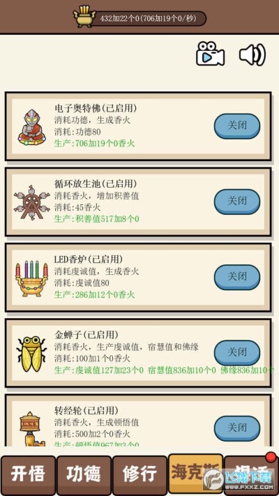 1、让你的游戏体验得到极大的提升,你可以通过不断的敲击木鱼从而收获更多的功德。