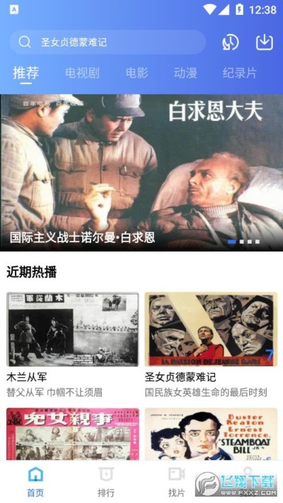 1、追风视频主页会为用户强烈推荐最近的一些影视大片内容,用户可以迅速播放。