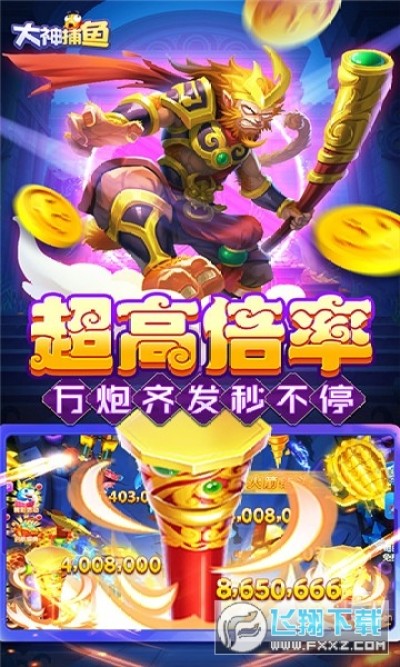 《大神捕鱼》是具创新性的捕鱼手游大作。游戏中除了延续经典街机捕鱼玩法外,还可以体验到创新性专属特色渔场玩法。强力推出6种新鲜玩法,每种渔场都有特殊BOSS和事件奖励,给您带来激爽丰富的体验!