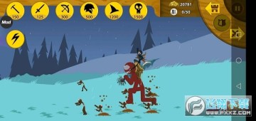 第十二关:最终对战,这时敌方用的是熔岩皮肤,十分强悍,前期两排剑士一排弓箭手,7个矿工发展经济(备上淘金热*3)后期养两巨人开路,两排弓箭手掩护,四排剑士拆雕像(备好剑士狂怒*2,一个拆雕像,一个防援兵),敌方雕像没血后会变出一个巨人(银甲大帝),这时赶紧撤退(防守模式),不要跟他硬刚,因为他伤害非常高。这时拿出对付巨人的套路,不过千万不要皮。打败他之后就会按照剧情发展,跟着剧情走就好了。