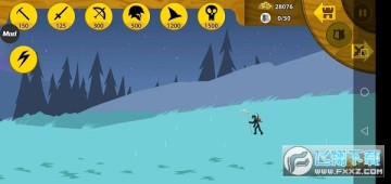 4、如果点击中间的盾牌按钮,火柴人士兵就会挡在基地前方,就算敌人过来了,也不会退缩一步。