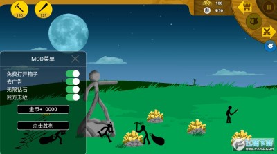 火柴人战争遗产无敌版MOD菜单是一款小编最近在玩的版本,别看功能不多,但是胜在强大,我方无敌,还有点击胜利,合理的排兵布阵,培养不同的兵种,有兴趣的玩家快来下载体验吧。